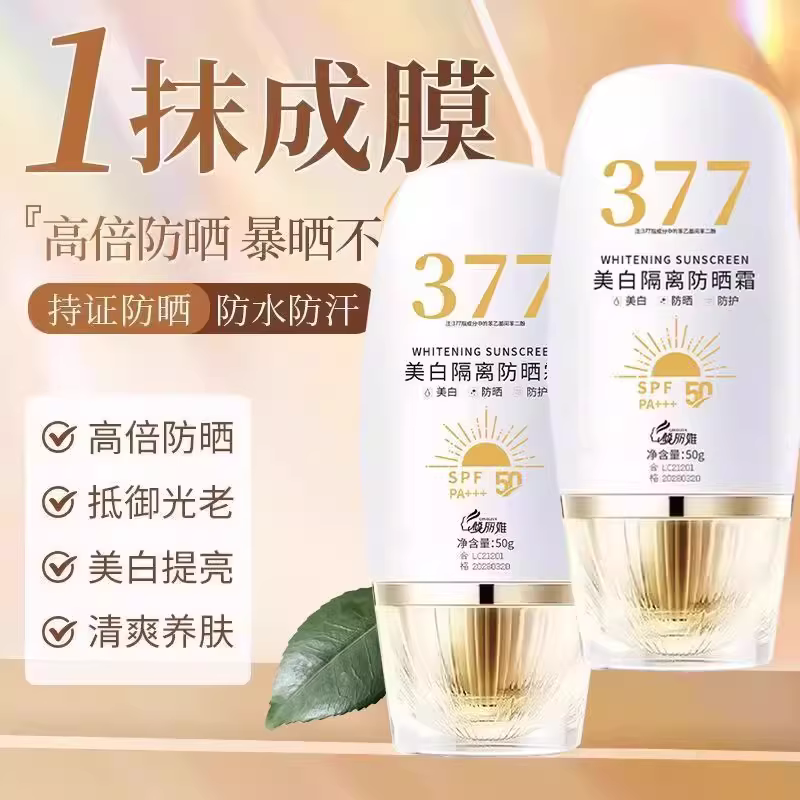 377美(měi)白(bái)隔離防曬霜(shuāng)SPF50+防水(shuǐ)防汗(hàn)防紫外(wài)線(xiàn)防曬乳學(xué)生(shēng)軍訓正(zhèng)品2